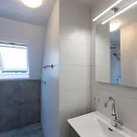 De gesitueerde in Plasmolen Holiday Home In Meeussen With Private Garden beschikt over een badkamer met een apart toilet, een douche en een wasmachine.
